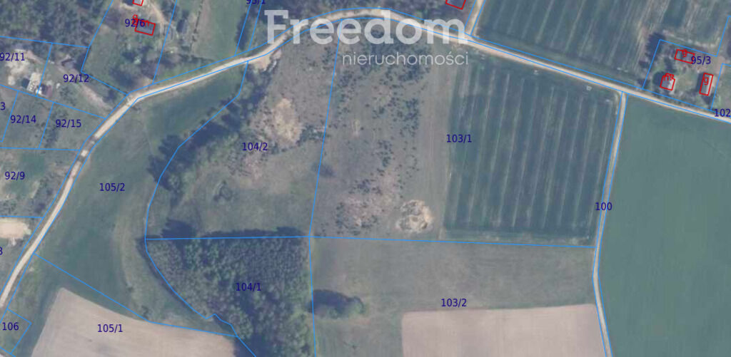 Działka o powierzchni 4,9309 ha oznaczona jest numerem 104/2 i 103/1